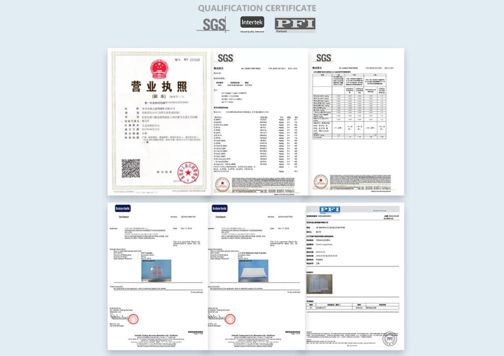 We hold a range of professional certifications, including SGS, CTTC, BSCI, ISO, OEKO, and GRS.